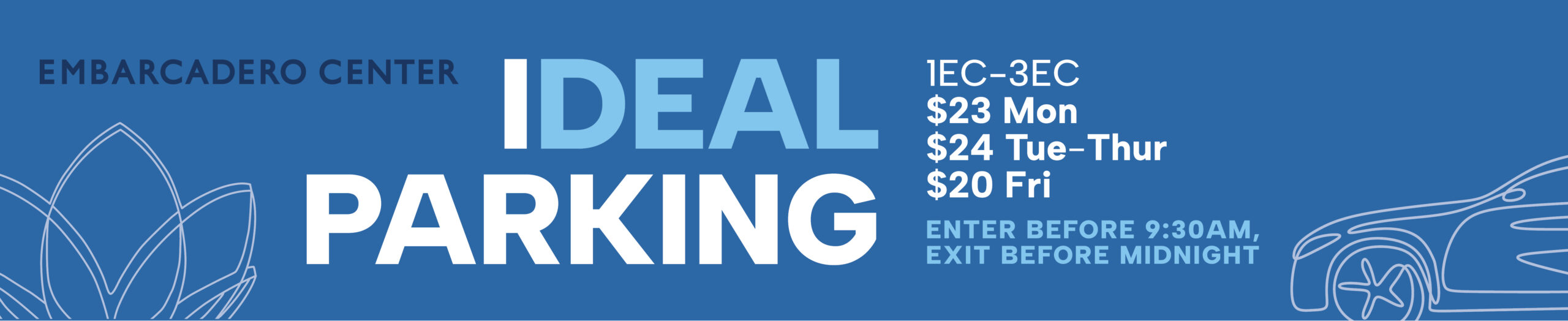 Embarcadero Center is offering a parking special! The rates are available to all parking customers who enter the garage by 9:30am and leave before midnight.